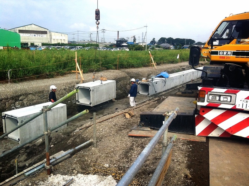 浦和スタジアムの北側で、ボックスカルバート700X700の設置工事を行いました。