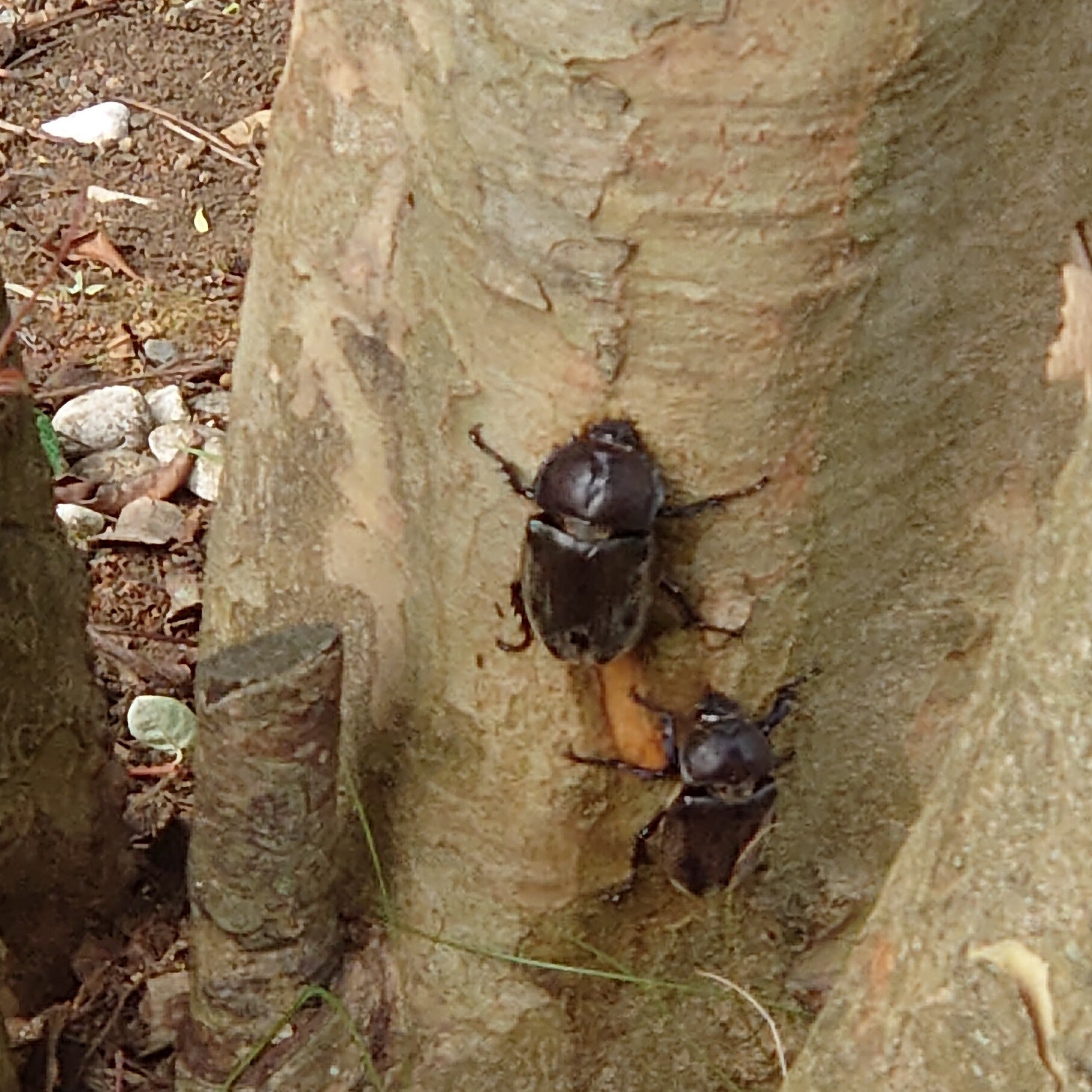 シマトネリコの木にカブトムシが寄ってきます。