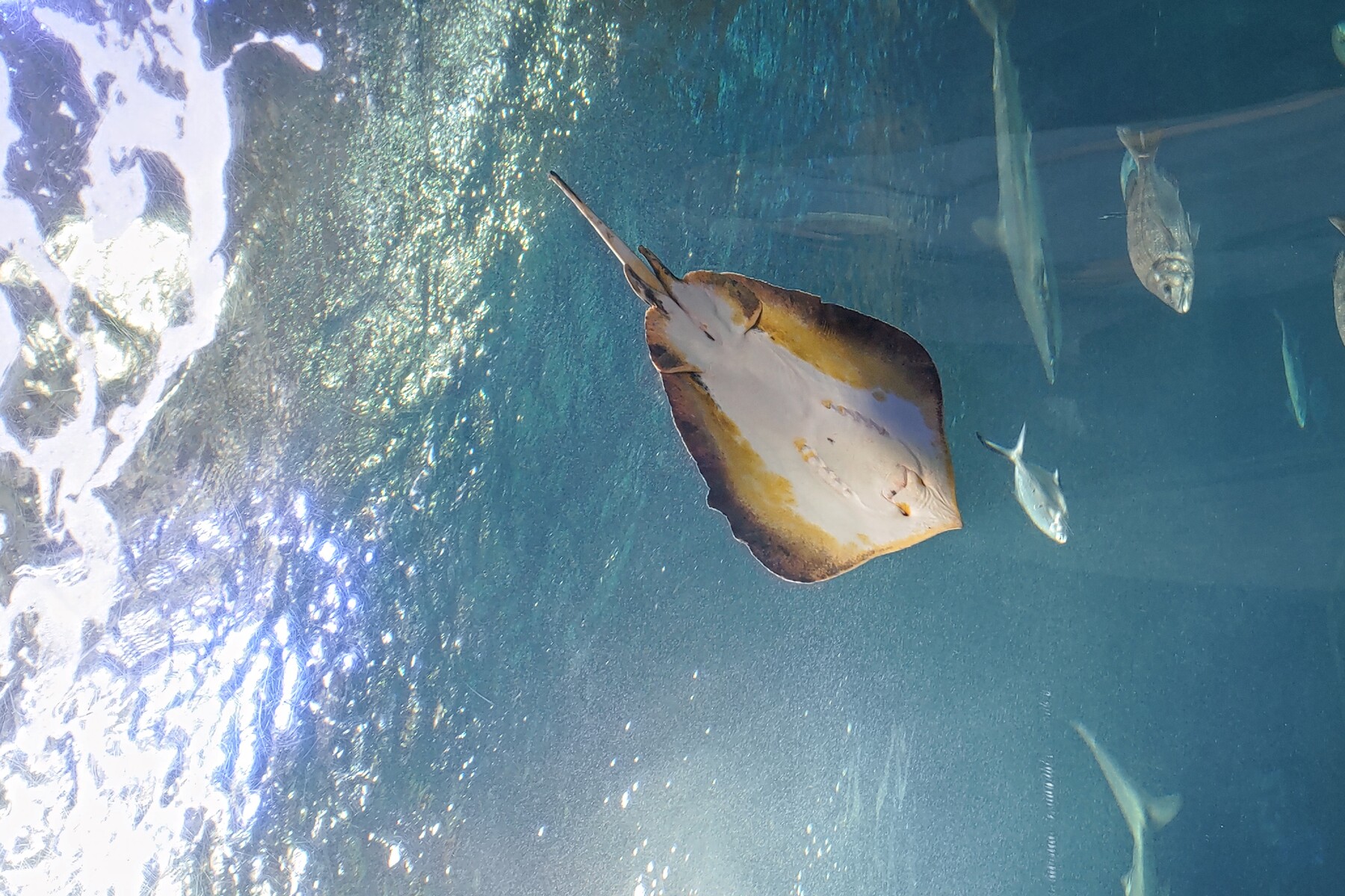 水槽を見上げているので、空を泳いでいるみたいですね。