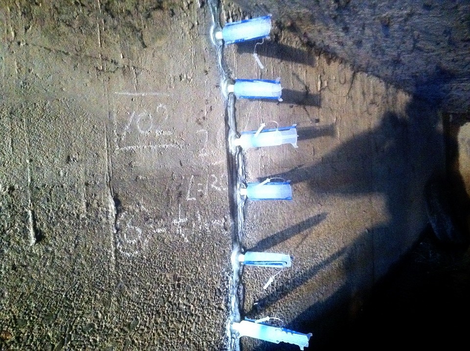 クラック部分は、シリンダーを使い、エポキシ樹脂を注入します。