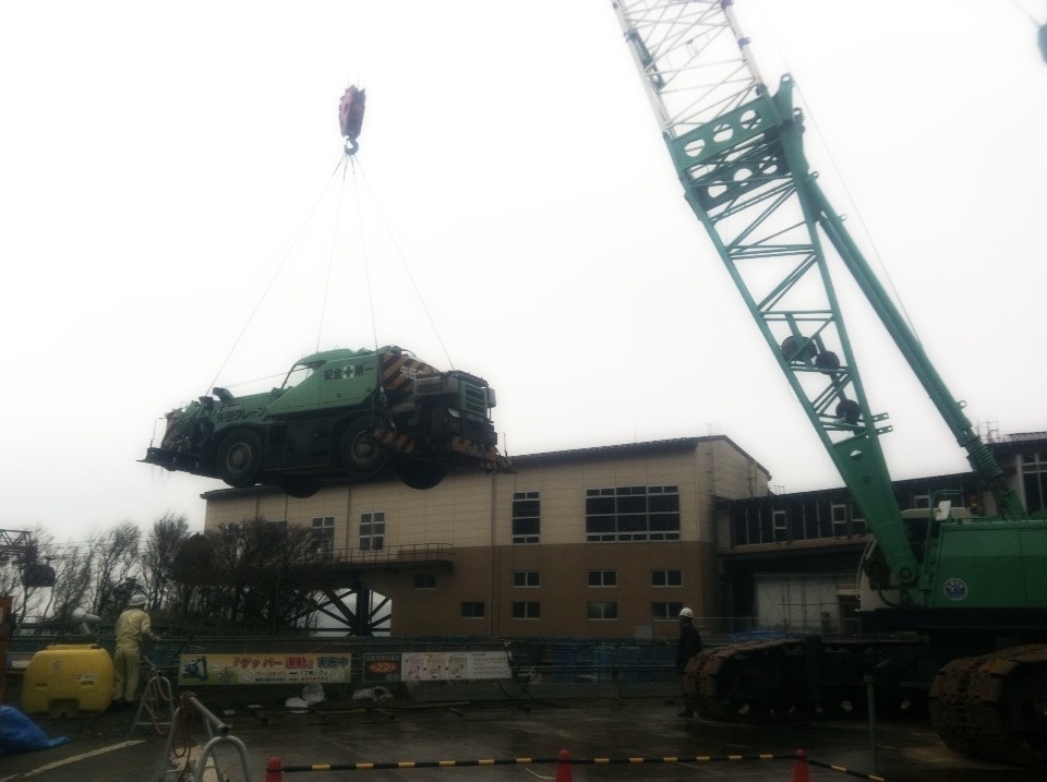 効率良く作業を続けるため、2台のクレーンを併用します。